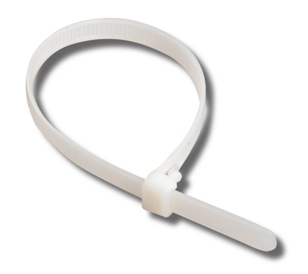 Хомут-стяжка нейлоновая многоразовая 300x7,5 мм, белая (уп 100 шт) (07-0309)
