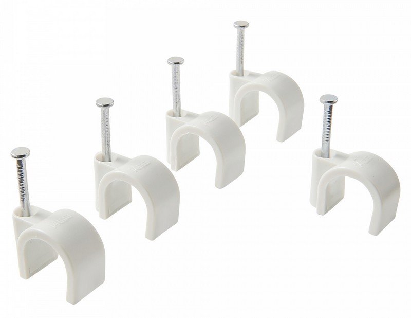 Скоба пластиковая с гвоздем для круглых кабелей и проводов, под кабель Ø 6 мм, упак. 100 шт. Белая