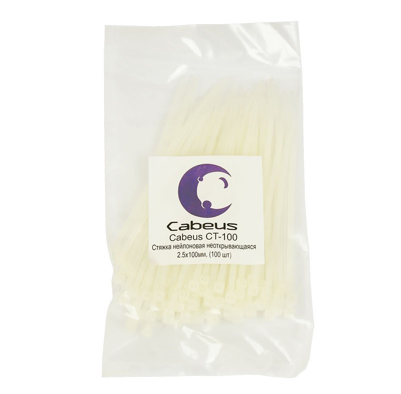 Стяжка нейлоновая неоткрывающаяся, безгалогенная (halogen free) 100x2.5мм, (100 шт).