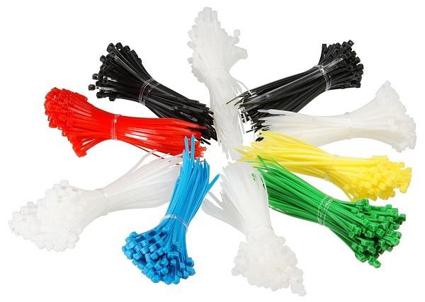 Набор стяжек нейлоновых неоткрывающихся, безгалогенные (halogen free), 100x2.5мм, (400 белых + 100 красных + 100 синих + 100 зеленых + 100 желтых + 200 черных) (1000 шт).