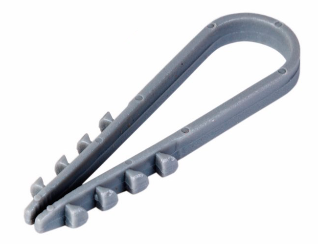 Дюбель-хомут нейлоновый; под кабель 9...14мм, диаметр отверстия для дюбеля 6мм; t-раб.-40...+80°С, 54х17мм (ДхШ). Серого цвета.