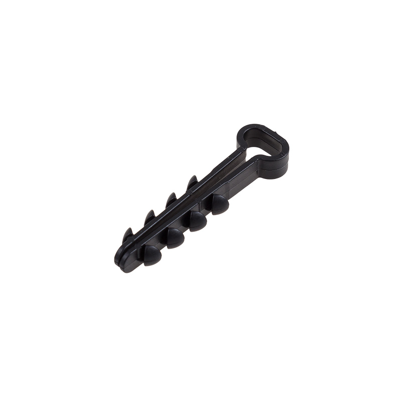 Дюбель-хомут нейлоновый; под кабель 2х0.5, 2х0.75, 2х1.5, диаметр отверстия для дюбеля 8х5мм; 41х11мм (ДхШ). Черного цвета.