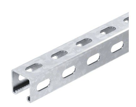 Усиленная C-образная монтажная рейка подходит для установки опорных конструкций, например, для кабеленесущих систем, либо для распределительных шкафов. Также подходит для прямого крепления кабеля в сочетании с зажимными скобами c U-образной ножкой; 3000x41x41 мм, толщина 2,5 мм