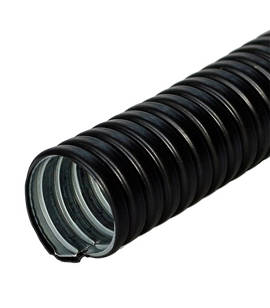 Металлорукав РЗ в ПВХ изоляции, негорючий; D-усл.прохода 8 мм; IP65, t-раб.-40...+60˚С. Черного цвета. Для внешней прокладки.