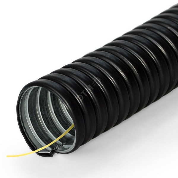 Металлорукав РЗ в ПВХ изоляции, негорючий; D-усл.прохода 10 мм; IP65, t-раб.-40...+60˚С. Черного цвета. Для внешней прокладки. С протяжкой.