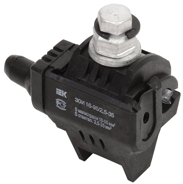 Зажим ответвительный изолированный, винтовое соединение; U-ном.1000В, I-ном.95А; сечение магистрали 19...95кв.мм, сечение ответвления 2.5...35кв.мм; t-раб.-60...+55°С, 78x42x71мм.