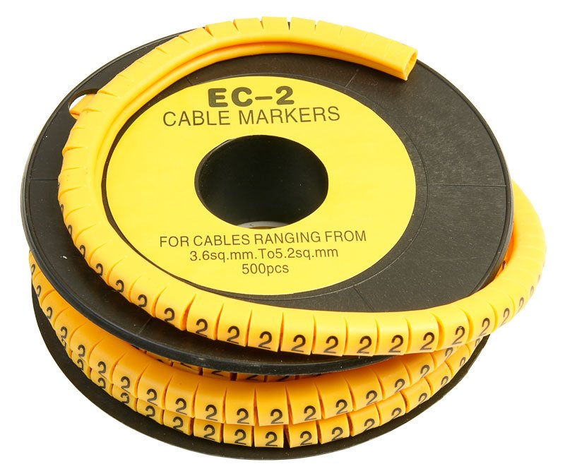 Маркер кабельный, трубчатый, эластичный, под кабели 3.6-7.4 мм, цифра 2, желтый, уп-ка 500шт.