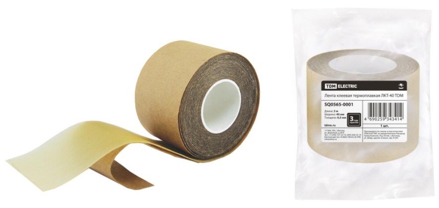 Лента клеевая термоплавкая, материал этилен винилацетат, для герметизации термоусаживаемых изделий, высокая адгезия к материалам, высокая прочность соединения; рулон ДхШхТ 5000х40х0.5 мм