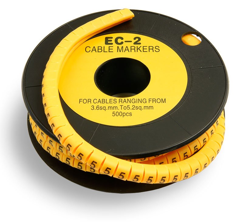 Маркер кабельный, трубчатый, эластичный, под кабели 3.6-7.4 мм, цифра 5, желтый, уп-ка 500шт.