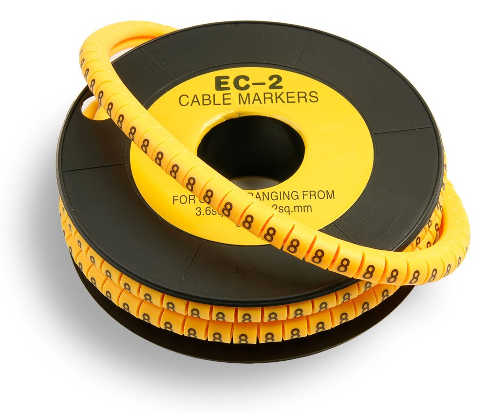 Маркер кабельный, трубчатый, эластичный, под кабели 3.6-7.4 мм, цифра 8, желтый, уп-ка 500шт.