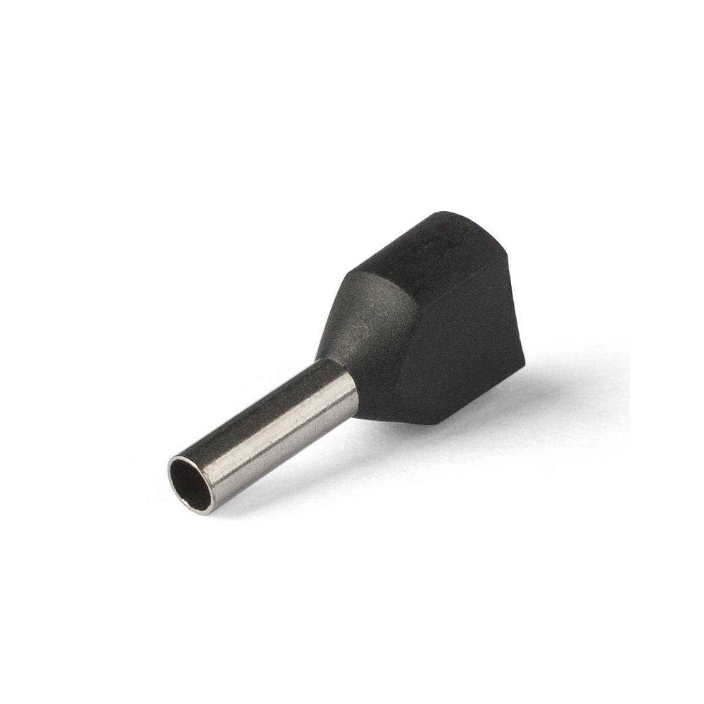 Наконечник-гильза под два провода для проводников сечением 1,5 мм², длина контактной части 8 мм, цвет черный, луженая медь.