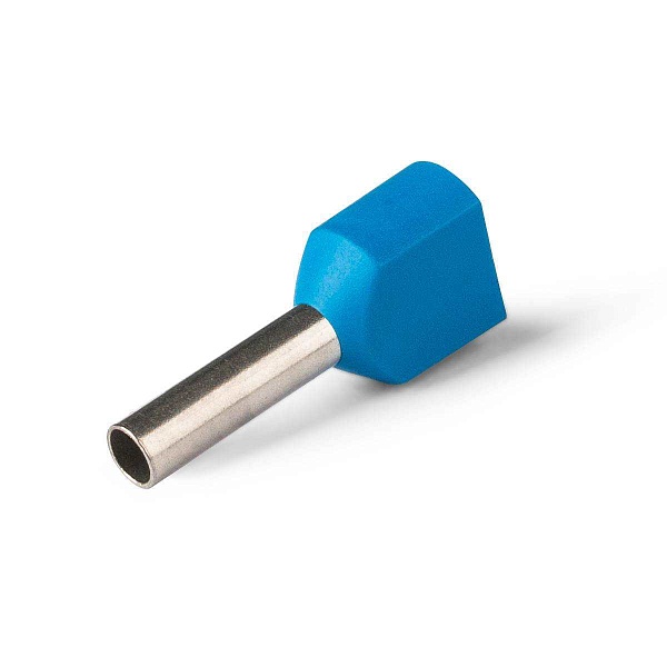 Наконечник-гильза под два провода для проводников сечением 2,5 мм², длина контактной части 10 мм, цвет синий, луженая медь.