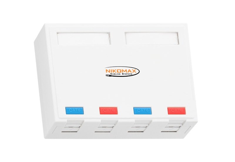 Корпус настенной розетки NIKOMAX, 4 порта, под модули-вставки типа Keystone, со шторками, белый.