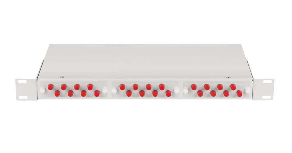 Оптический кросс 19", 1U, укомплектованный на 24 порта FC/UPC(24 одинарных FC/UPC адаптеров), SM 9/125 OS2, стальной, серый, в комплекте: адаптеры, монтажные шнуры 1м, сплайс-кассета с крышкой, гильзы