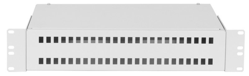 Оптический кросс 19", 2U, до 48 SC портов или 96 LC портов, стальной, серый, неукомплектованный.