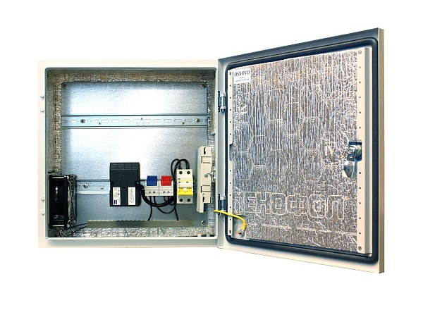 Уличная станция с оптическим кроссом + система обогрева: 2 разъема SC (ложемент 8 КДЗС, пигтейл оптический одномодовый SC 0,9мм длина 1,5м 183x113x22мм); шкаф металлический; IP66, встроенные DIN-рейки: верхняя - 320мм, нижняя -160мм; набор гермовводов; автоматический выключатель 2P 220 В, 10A; обогреватель на DIN-рейке AC 230 В, 200Вт; -60…+50°С; размеры шкафа 400x400x210 мм. Поддержание температуры внутри шкафа от -0...+55°С (при изменении наружной температуры от -50... +50°С).