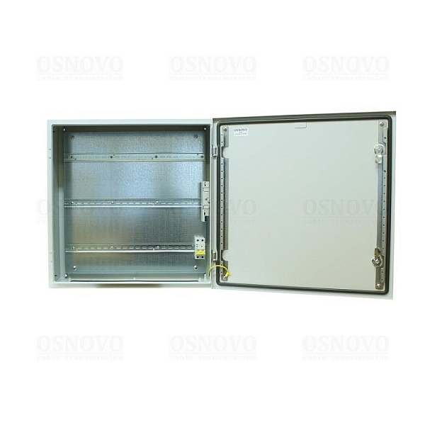 Уличная станция с оптическим кроссом. В основе металлический шкаф с классом защиты IP66. Доступное место под установку оборудования на встроенные DIN-рейки: верхняя - 540мм, средняя - 520мм, нижняя - 490мм. Может поставляться со встроенным оборудованием по заказу. Размеры (ШхВхГ): 600x600x210мм. Рабочая температура: -50…+50°С.