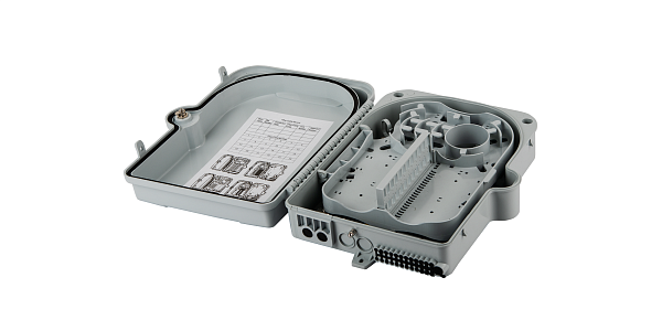 Оптическая распределительная кросс - муфта, позволяет вводить до 2-х магистральных кабелей и до 24 - х абонентских кабелей, ABS пластик, с комплектом для монтажа(гильзы КДЗС, саморезы, стяжки, дюбели), серая, IP65, 340x270x100 мм.