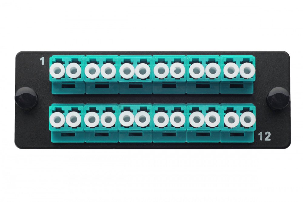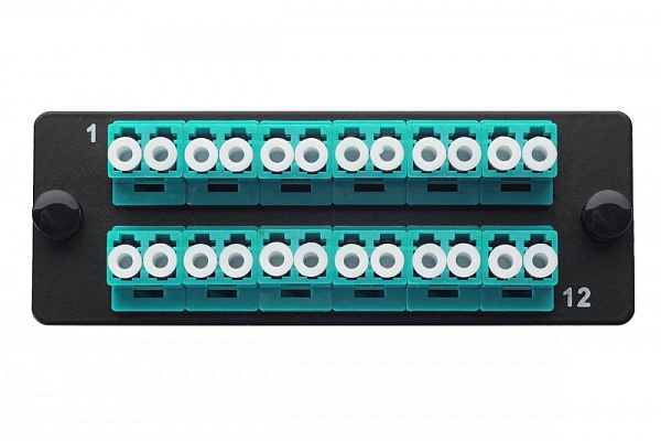 Комплект планка Q-SLOT с 12 адаптерами дуплекс LC OM3, монтажные шнуры, КДЗС,