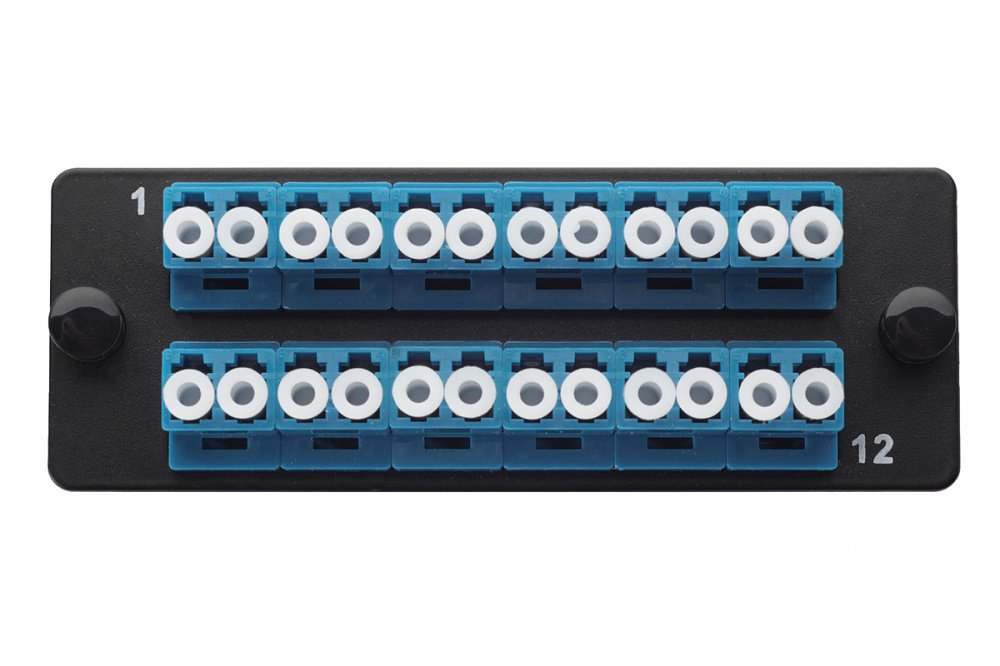 Комплект планка Q-SLOT с 12 адаптерами дуплекс LC OS2, монтажные шнуры, КДЗС,