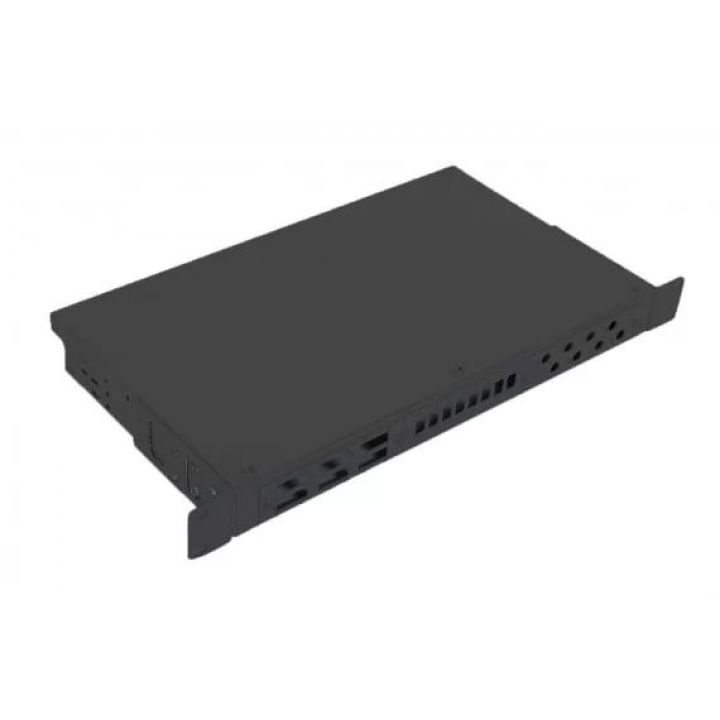 Оптический кросс 19", 1U, до 24 портов, комплектация: маркеры кабеля, таблица кроссировки волокон, стяжки и панели для установки восьми адаптеров ST – 3 шт., SC - 3 шт., SC Duplex – 2 шт., фальшпанели – 2шт, внутри корпуса установлена сплайс-кассета, черный RAL 9005, IP 20, 45х 483х237 мм.
