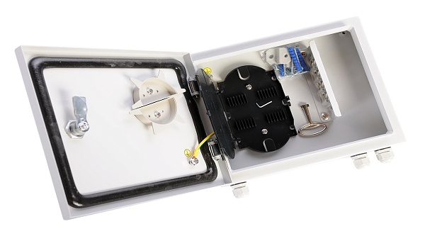 Кросс оптический, IP 55 настенный, одна дверь, замок, до 8 портов, откидная сплайс-кассета емкостью 12ОВ-1 шт., откидная защитная крышка сплайс-кассеты-1 шт., патч-панель для установки адаптеров типа SC/LC duplex, емкостью 4 порта-2 шт., сменная вставка для установки адаптеров типа FC/ST-8 шт., заглушка гнезда адаптера-4 шт., гильза КДЗС 6030-8 шт., лоток для укладки запасов оптического волокна-1 шт., стяжка CV-100-5 шт., крепление ЦСЭ-1 шт., кабельный цанговый зажим-3 шт., маркер кабеля-1 шт., таблица кроссировки волокон-1 шт., комплект крепления к стене-1 шт, 300х250х86 мм.