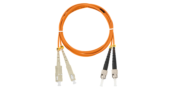 Шнур волоконно-оптический, переходной, многомодовый 50/125мкм, стандарта ОМ2, SC/UPC-ST/UPC, двойной, LSZH нг(A)-HFLTx, 2мм, оранжевый, 3м.