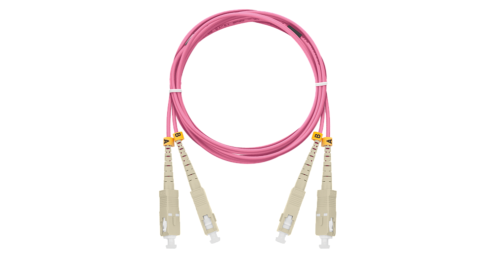 Шнур волоконно-оптический, соединительный, многомодовый 50/125мкм, стандарта ОM4, SC/UPC-SC/UPC, двойной, LSZH нг(A)-HFLTx, 2мм, маджента, 3м.