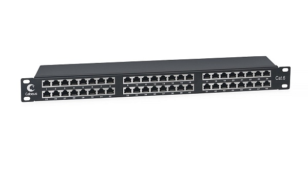 Патч-панель высокой плотности 19", 1U, 48 портов RJ-45, категория 6, полностью экранированная, Dual IDC.