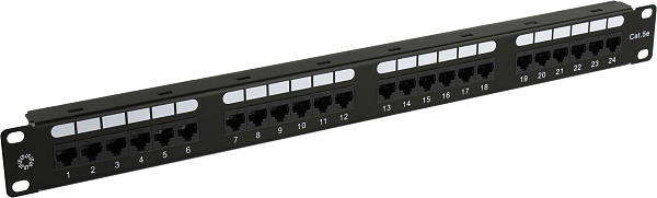 Патч-панель 19"; 1U; 24 порта RJ45/8P8C; Кат. 5e; 110, Dual IDC.