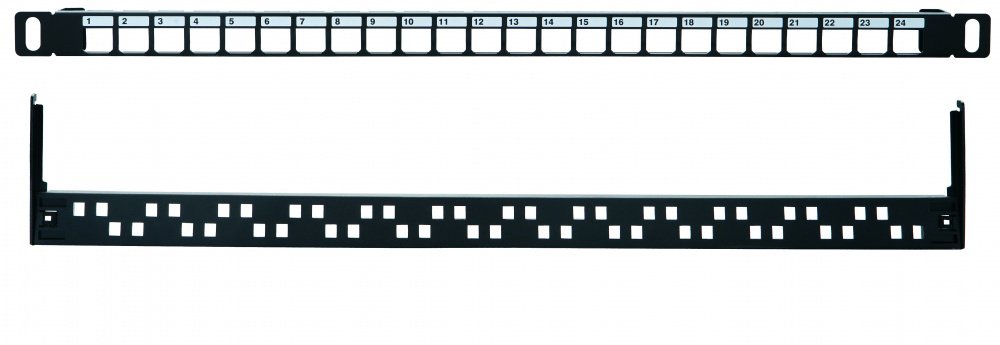 Патч панель 19” наборная, UTP, 0,5U, 24 порта Keystone, цвет черный.