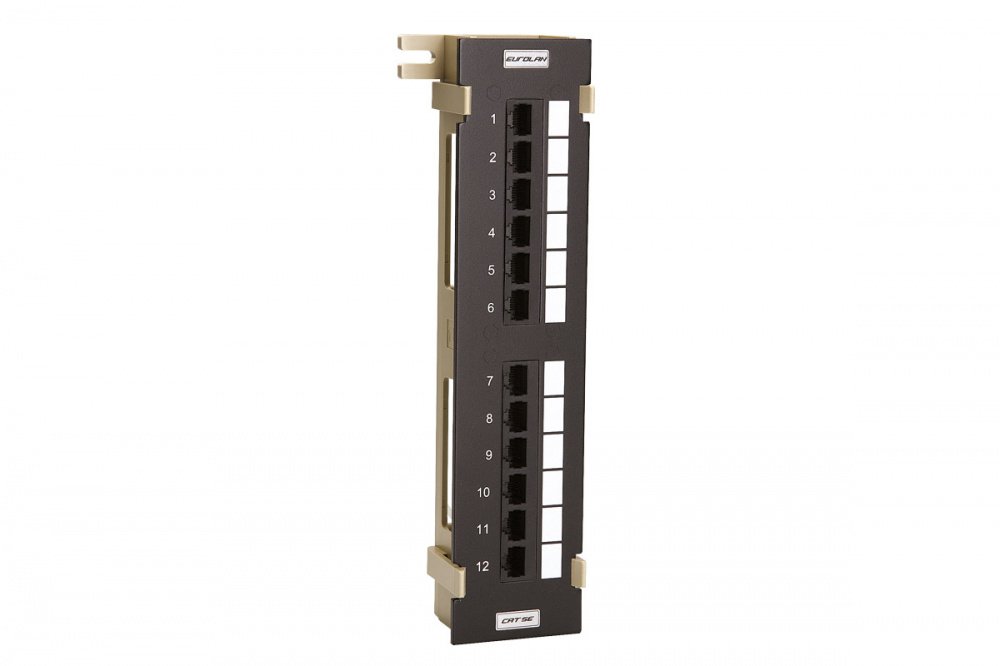 Патч панель настенная 89D, категория 5е, UTP, 12 портов RJ-45, цвет черный.