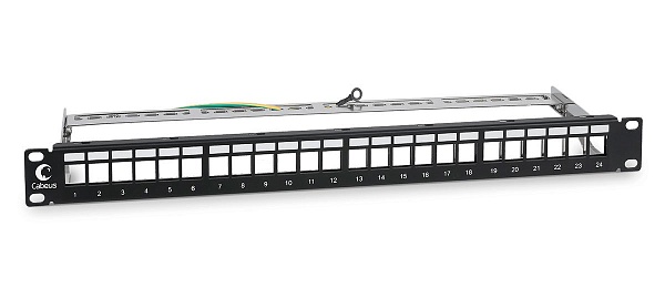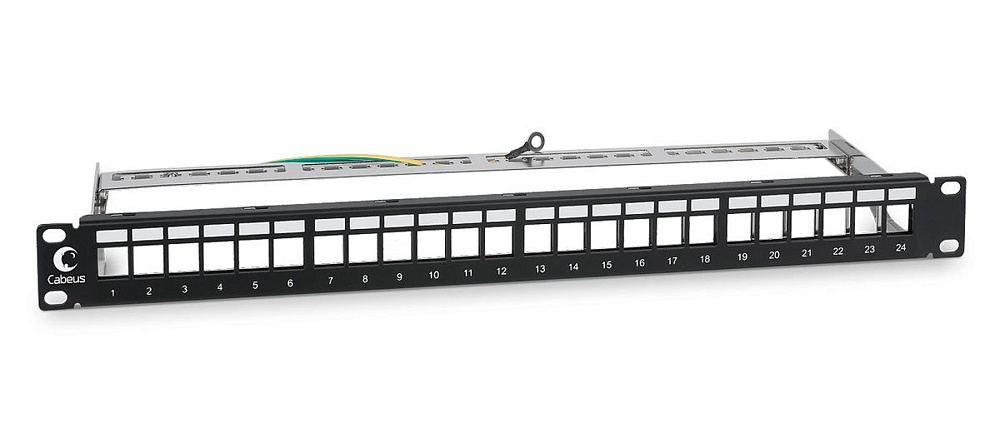 Модульная патч-панель 19", 24 порта, 1U, для экранированных модулей Keystone, с задним кабельным организатором (без модулей).