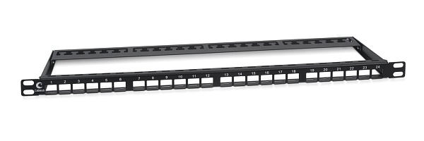 Модульная патч-панель высокой плотности 19" (0,5U), 24 порта, для неэкранированных модулей Keystone, с задним кабельным организатором (без модулей).