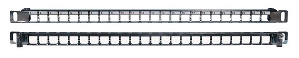 Модульная патч-панель 19", 24 порта, Flat Type, 0.5U, для экранированных и неэкранированных модулей KJNE, с задним кабельным организатором (без модулей)