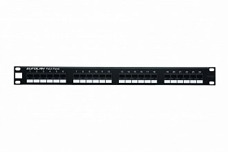 Коммутационная панель 19” моноблочная, категория 5е, UTP, 1U, 24 порта, черный