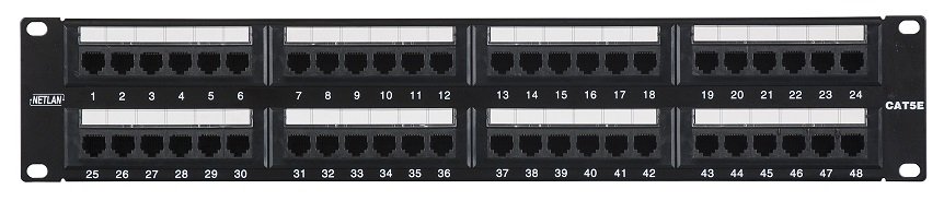 Патч-панель 19", 2U, 48 порта RJ-45, категория 5e, 110/KRONE, цвет черный.