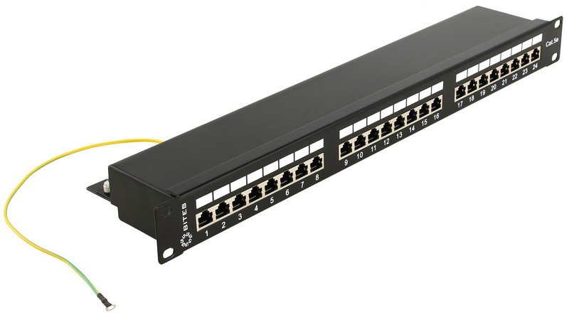 Патч-панель 19", 1U, 24 порта RJ-45, категория 5e, экранированная, KRONE/110 Dual IDC, цвет черный.