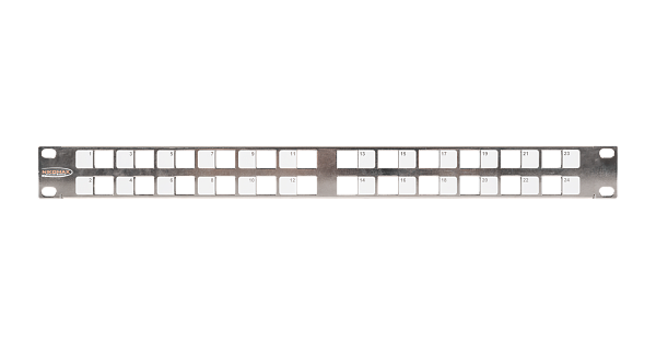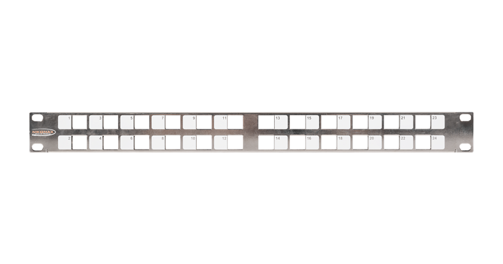 Коммутационная панель NIKOMAX 19", 1U, наборная, под 24 угловых модуля Keystone серии AN, UTP/STP, с заземлением, с органайзером, металлик.
