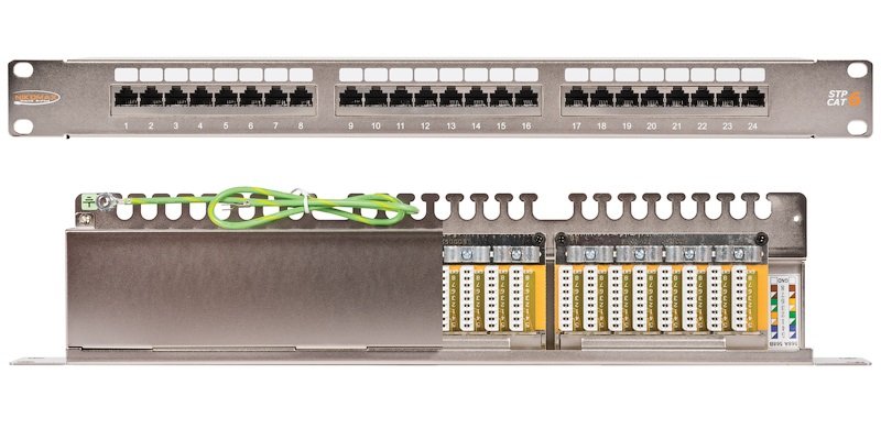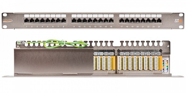 Коммутационная панель NIKOMAX 19", 1U, 24 порта, Кат.6 (Класс E), 250МГц, RJ45/8P8C, 110/KRONE, T568A/B, полный экран, с органайзером, металлик.