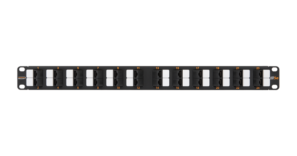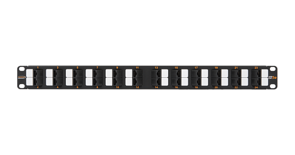 Коммутационная панель NIKOMAX 19", 1U, 24 угловых порта, Кат.5e (Класс D), 100МГц, RJ45/8P8C, 110/KRONE, T568A/B, неэкранированная, с органайзером, черная.
