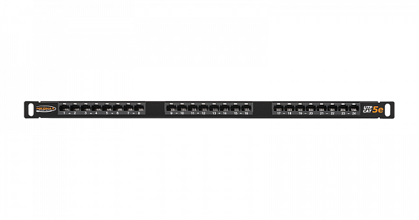 Коммутационная панель NIKOMAX 19", 0,5U, 24 порта, Кат.5e (Класс D), 100МГц, RJ45/8P8C, 110/KRONE, T568A/B, неэкранированная, с органайзером, черная.