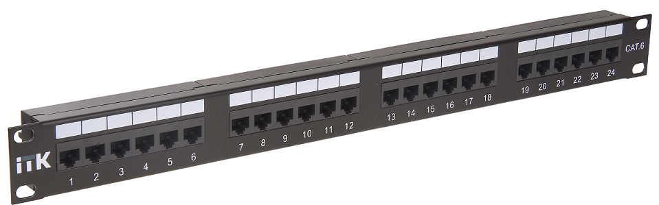 Патч-панель 19" (1U), 24 порта RJ-45, кат. 6, Dual IDC, 44.5х482х33 мм.