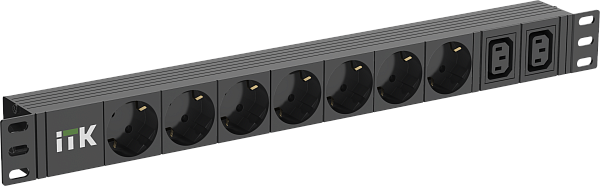 Блок силовых розеток 19" со шнуром 2 м с розеткой SCHUKO., 7 розеток SCHUKO, 2 розетки С13, AC 220 В/50 Гц, ПВХ, цвет черный.