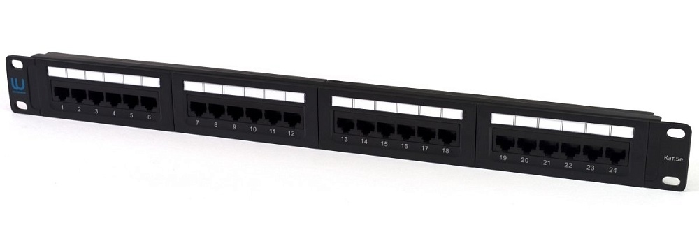 Патч-панель 19", 1U, 24 порта RJ-45, категория 5e, цвет черный.