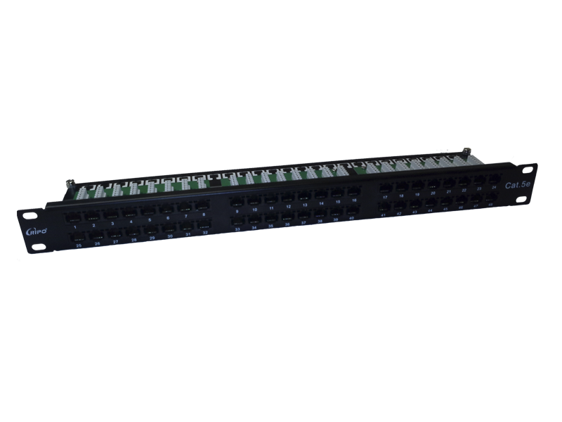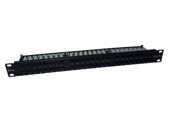 Патч-панель 19", 1U, 48 портов, Cat.5e (Класс D), 100МГц, RJ45/8P8C, 110/KRONE, T568A/B, неэкранированная, черная