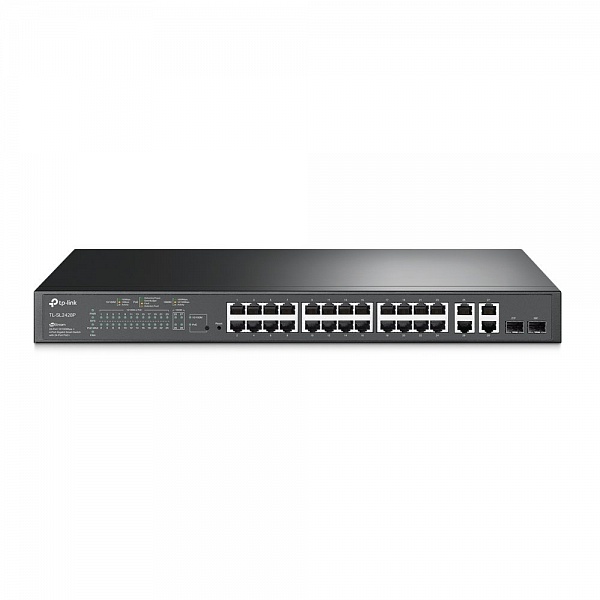 Коммутатор сетевой гигабитный управляемый L2/L3/L4; 24 портовый с РоЕ; 24 порта RJ45 802.3at/af 10/100 Мбит/с; 4 порта RJ45 10/100/1000 Мбит/с; 2 комбо гигабитных SFP-слота; IGMP snooping; Суммарный бюджет POE 250 Вт; 100-240 АС; 0…+40°C; 440х180х44 мм