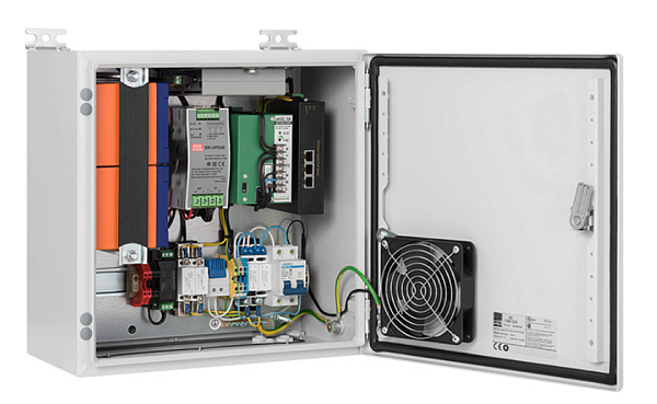 Узел Доступа: NIS-3200-132PSGB промышленный коммутатор: uplink 1 TP/1G, 2 порта TP/1G PoE 30Вт, шкаф NSB-3838 с вентилятором, без нагревателя, без ODF; СБП DR-DC 24В, 240ВА с крепежом для АКБ 15Aч x2; IP 66; -40…+60°С; 380х380х210 мм.