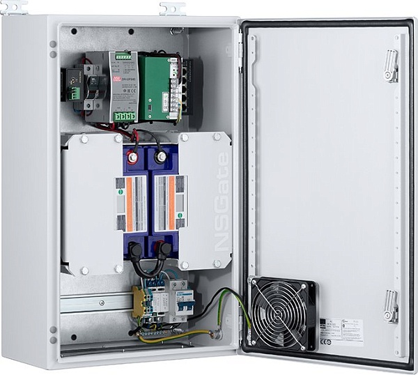 Узел доступа уличного типа, с резервным питанием от солнечной панели, с вентилятором, СБП DR-24В DC-240ВA с крепежом для АКБ 15Ач x2; 4G LTE роутер; промышленный коммутатор сетевой гигабитный неуправляемый с POE; 5 портовый; 4xRJ45 10/100/1000 Base-T с POE 802.3af/at Mode A, 1/2(+)3/6(-) до 30 Вт на порт; 1хRJ45 10/100/1000 Base-T порт; DC 48-58В ; POE бюджет 120 Вт; релейный контакт; Защита от перегрузки и переполюсовки; IP30; -40 …+75 °С; 380x380x210мм.