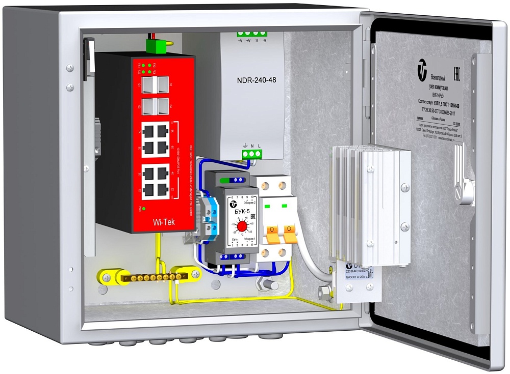 Всепогодный узел коммутации для обеспечения работы от 1-й до 8-и IP-видеокамер с питанием по технологии РоЕ/PoE+, организации группового канала передачи данных по волоконно-оптической сети. Габариты 300х300х210мм. Диапазон рабочих температур -60°С…+50°C. Класс защиты IP66.